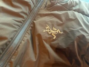 アークテリクスのロゴは刺繡になってます。プリントだと長く使うと剥がれたりしますが、これなら安心です。