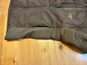 サイドパネルは少し化繊量が少なくなっており、熱を逃がしてくれます。最近、このアトムSVを着て山に登りましたが、蒸れとかも少なく快適でした。脇まであるのがいい感じです。
