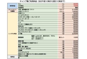 利用料金はこのキャンプブームの世の中でも格安です。大人一人なんと300円です。大型のテントサイトを使っても+1500円です。AC電源などはありませんがそれでも安いと思います。
